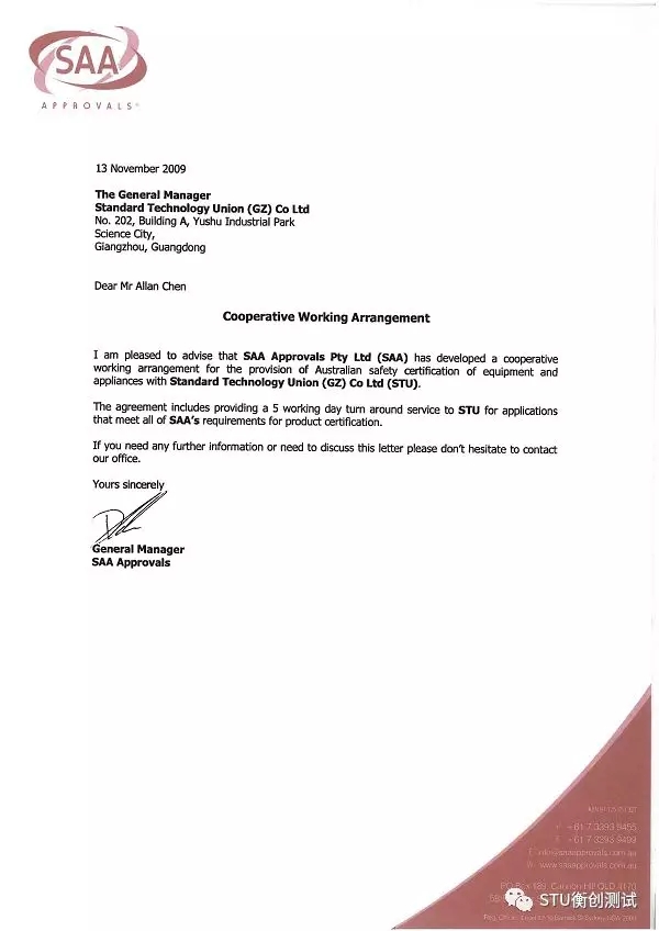 澳洲國家發證機構SAA授權